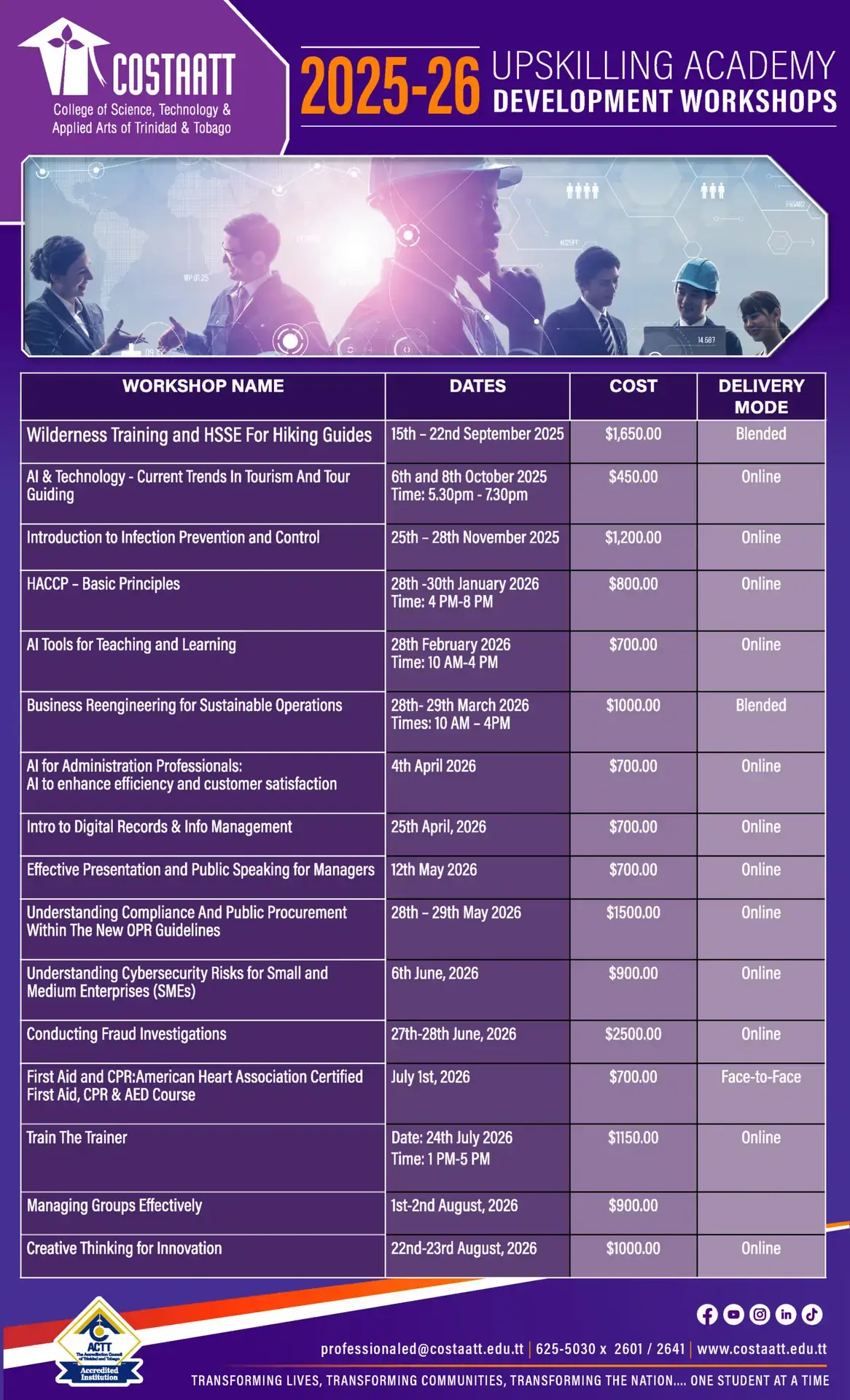 The Prior Learning and Assessment Recognition (PLAR) Unit – This Unit works with students to assist them with documenting their informal learning experiences, toward award of transferrable credits in their programme of study. Coming soon, the general public will also be able to convert experiential learning to college credit for use with employers and other tertiary institutions. To better support its clients, the School’s focus on programme design and competency-based expertise ensures workforce enhancement, efficiency and superior results.
