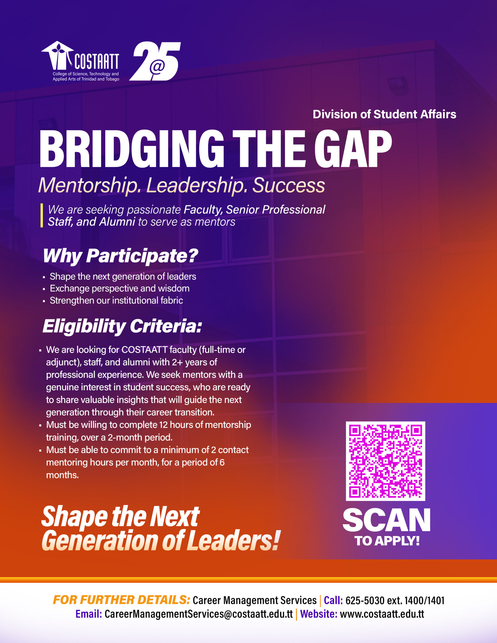 COSTAATT’s Career Mentorship Programme is more than a resource, it is a supportive and engaging ecosystem designed to enhance students’ career readiness. It serves as a bridge between their current potential and future professional identity. By fostering these vital connections, the programme can ensure that students graduate not just with a degree, but with the confidence and network to lead in a global and ever-evolving workforce.